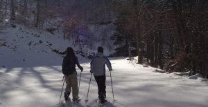 Randonnées raquettes : cheminer le long des sentiers boisés dans la neige étincelante, crissant sous vos pas ;